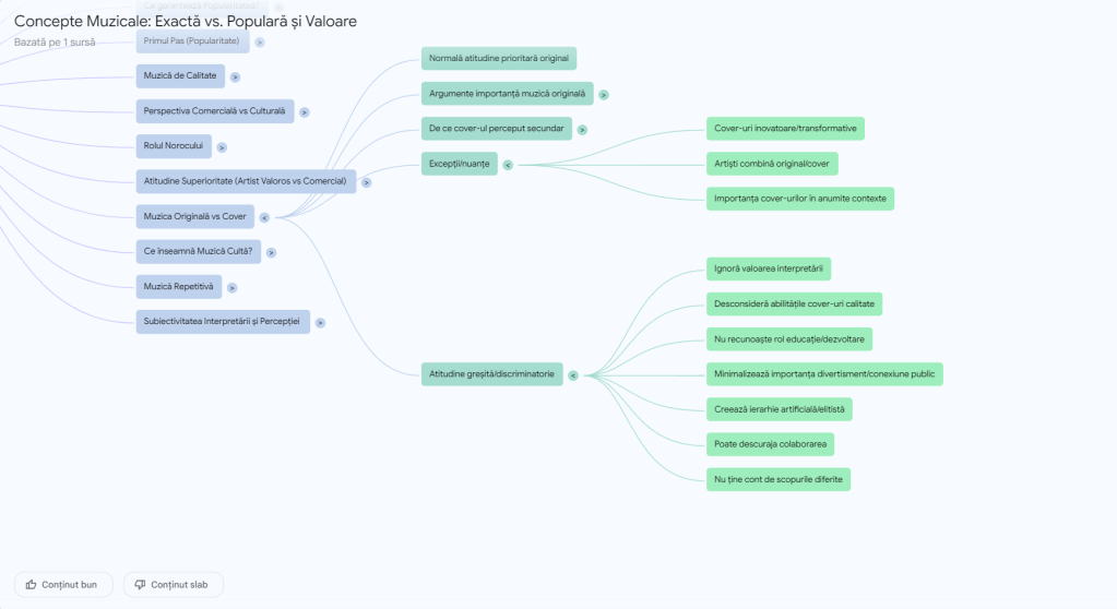 - Desconsideră abilitățile necesare pentru cover-uri de calitate: A reproduce fidel și cu emoție o piesă complexă, păstrând esența originalului, dar adăugând propria amprentă, necesită abilități tehnice, muzicale și emoționale semnificative.