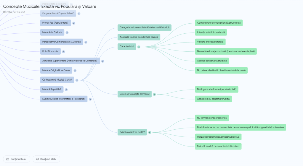 - Distincția față de muzica populară: Muzica populară este adesea caracterizată de o structură mai simplă, melodii ușor de reținut și o funcție socială mai directă (dans, divertisment de masă). Muzica cultă, în contrast, tinde să fie mai complexă și mai orientată spre expresia artistică individuală.
